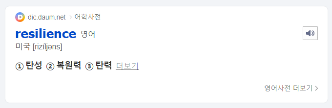 회복탄력성 ; Resilience(복원력, 탄성, 탄력)을 어원으로 한다.
